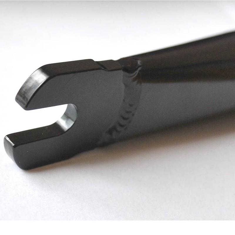 - Pattes : 5 mm d’épaisseur – Pour axes 3/8″ – Entraxe 100 mm – découpé en « V » pour optimisation du passage de cable de freins avant, à l’arrière sur la version avec tasseaux uniquement