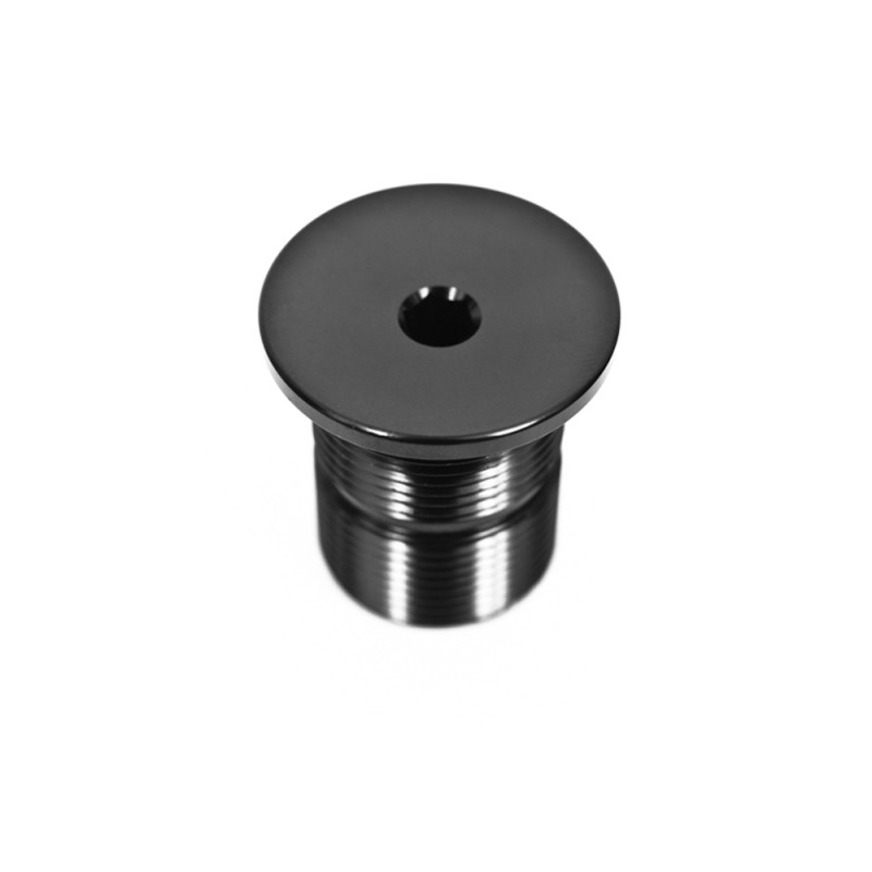 - Bouchon de fourche : En aluminium usiné CNC – passage de câble pour le frein avant – Serrage avec clef allen 6 mm – M25
