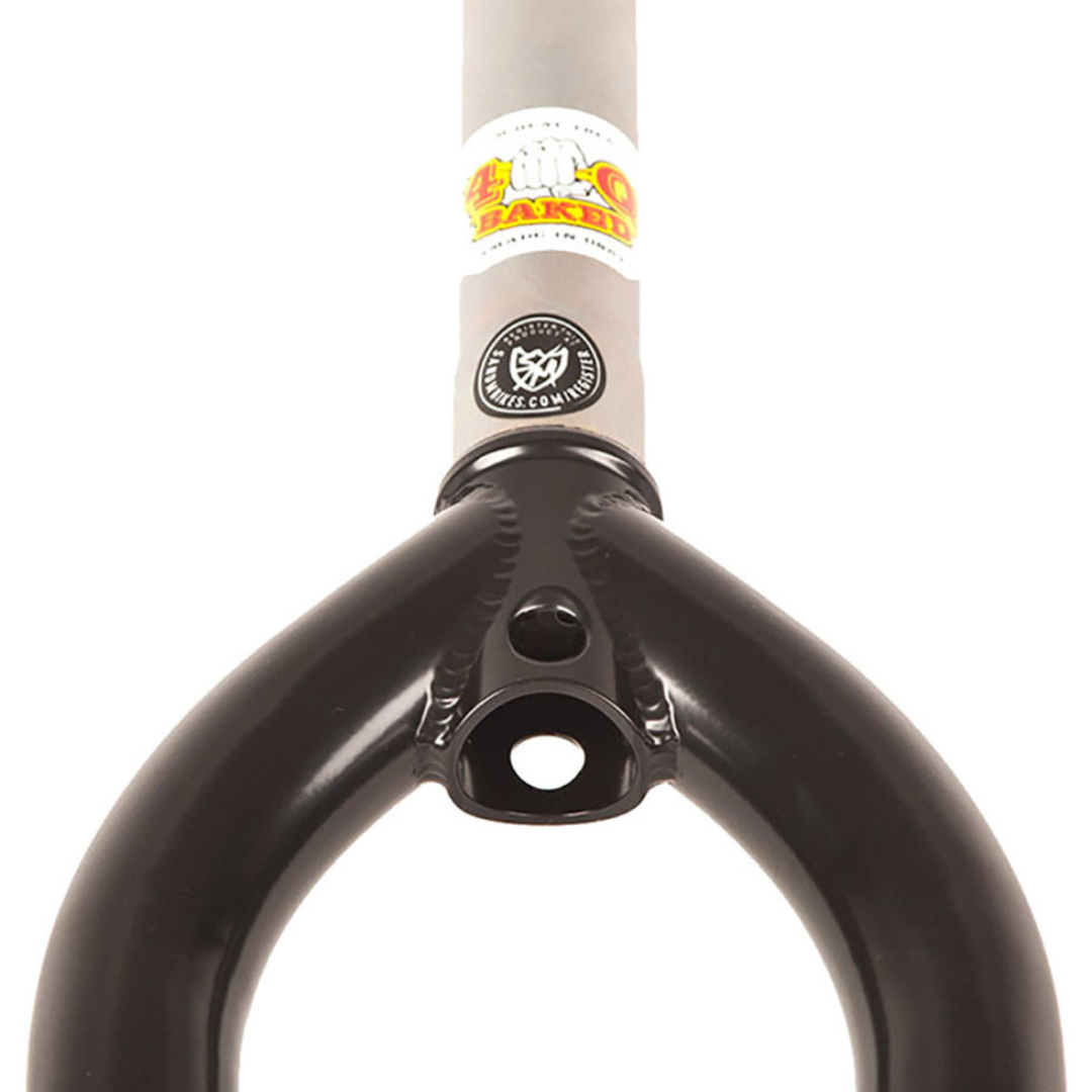 Fourche S&M avec un déport ultra-réactif de 15 mm est parfait pour les riders techniques. Les pattes tapered avec des pattes enveloppantes offrent beaucoup de dégagement pour les pegs, les tubes de fourche de grand diamètre offrent un dégagement suffisant pour les pneus. Un offset et un empattement global plus courts facilitent toutes les figures sur la roue avant, les bar spins et les rotations.