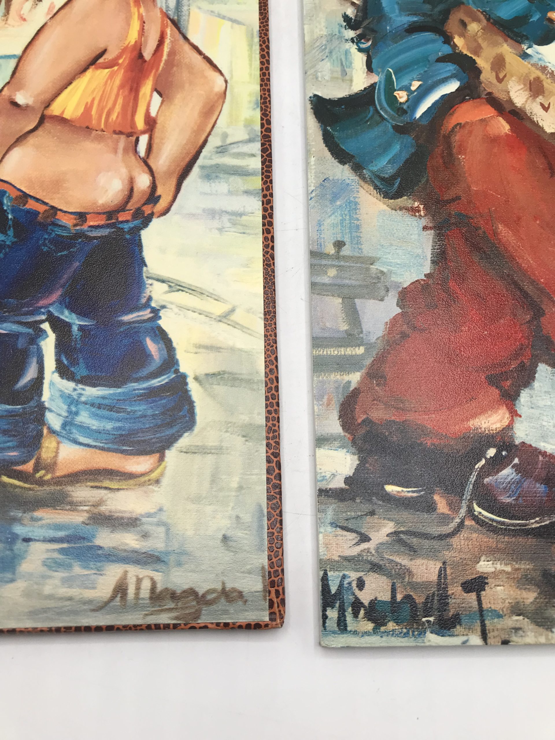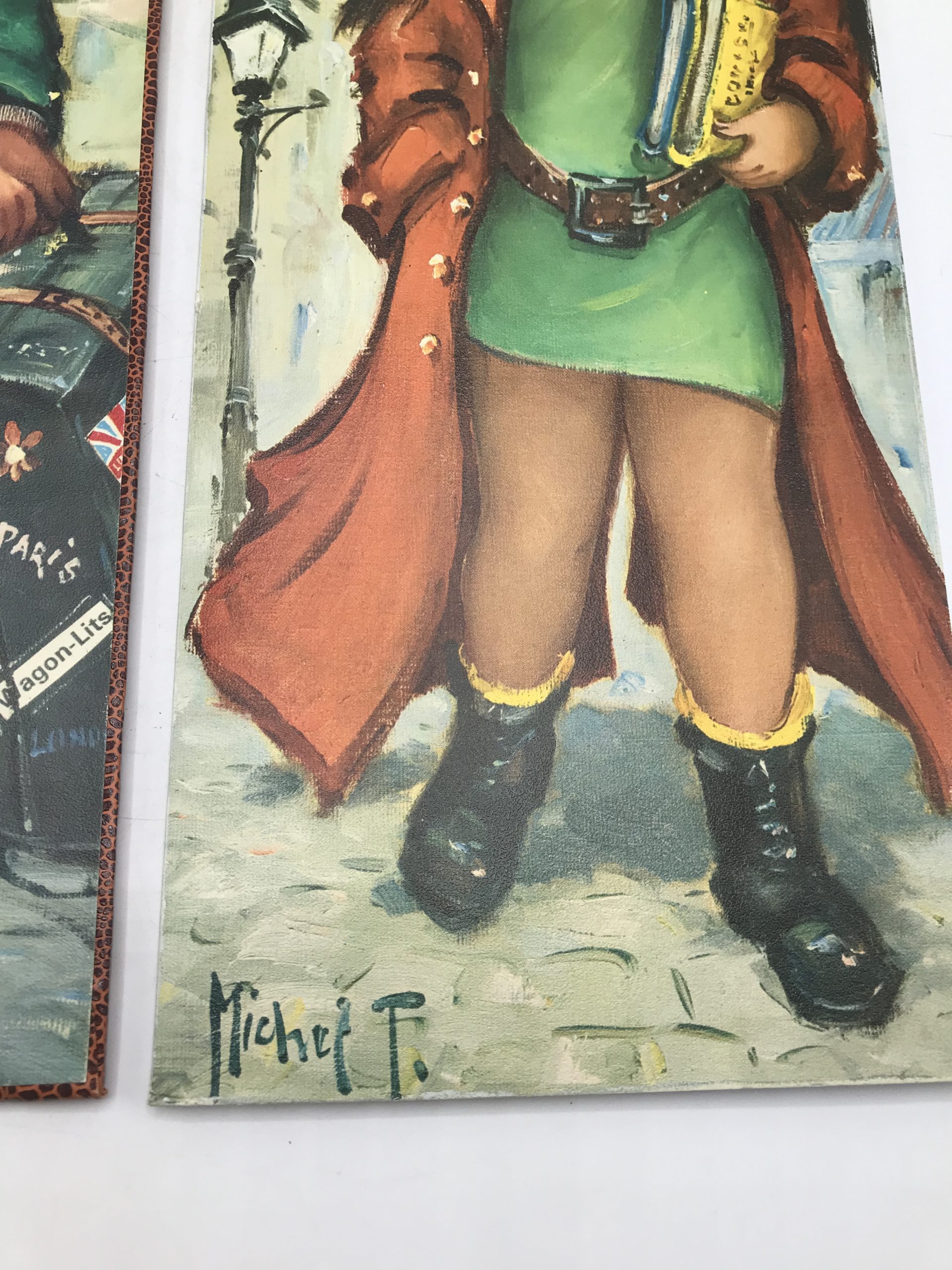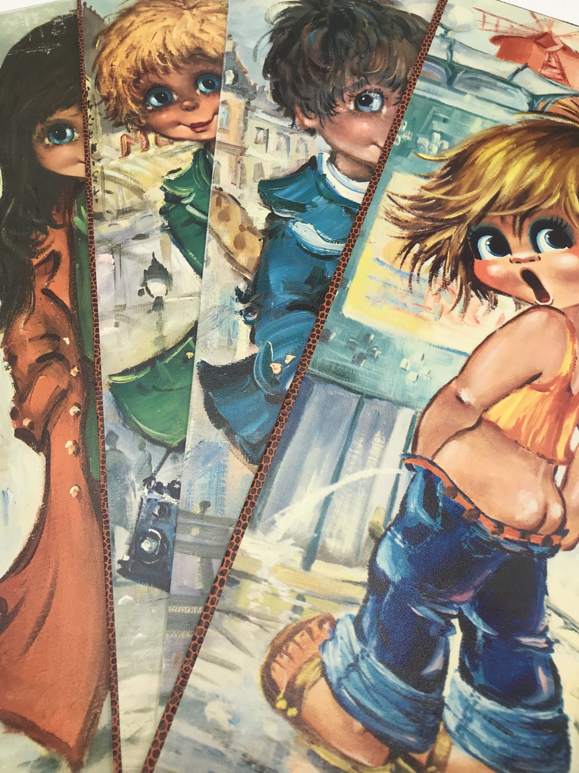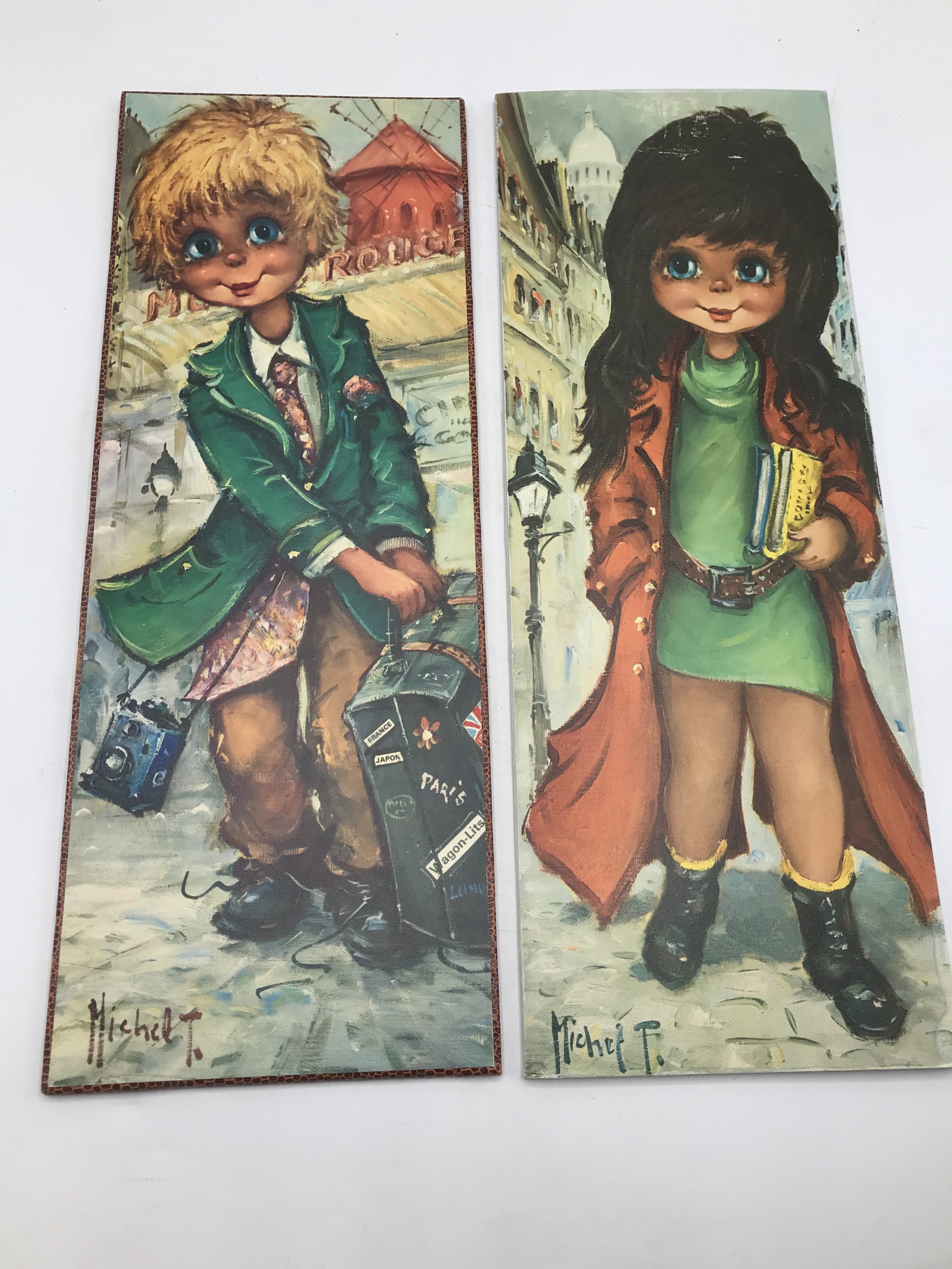 Lot de 4 plaques de bois avec impressions Michel Thomas et autres artistes du même genre. Très vintage années 1970 représentant des enfants aux visages étonnés ou angéliques. Une belle touche déco pour une ambiance vintage à coup sur !!!! Avis aux amateurs de ces petits bambins qui égayerons leurs murs. Les plaquettes font 15 cm sur 40 cm.