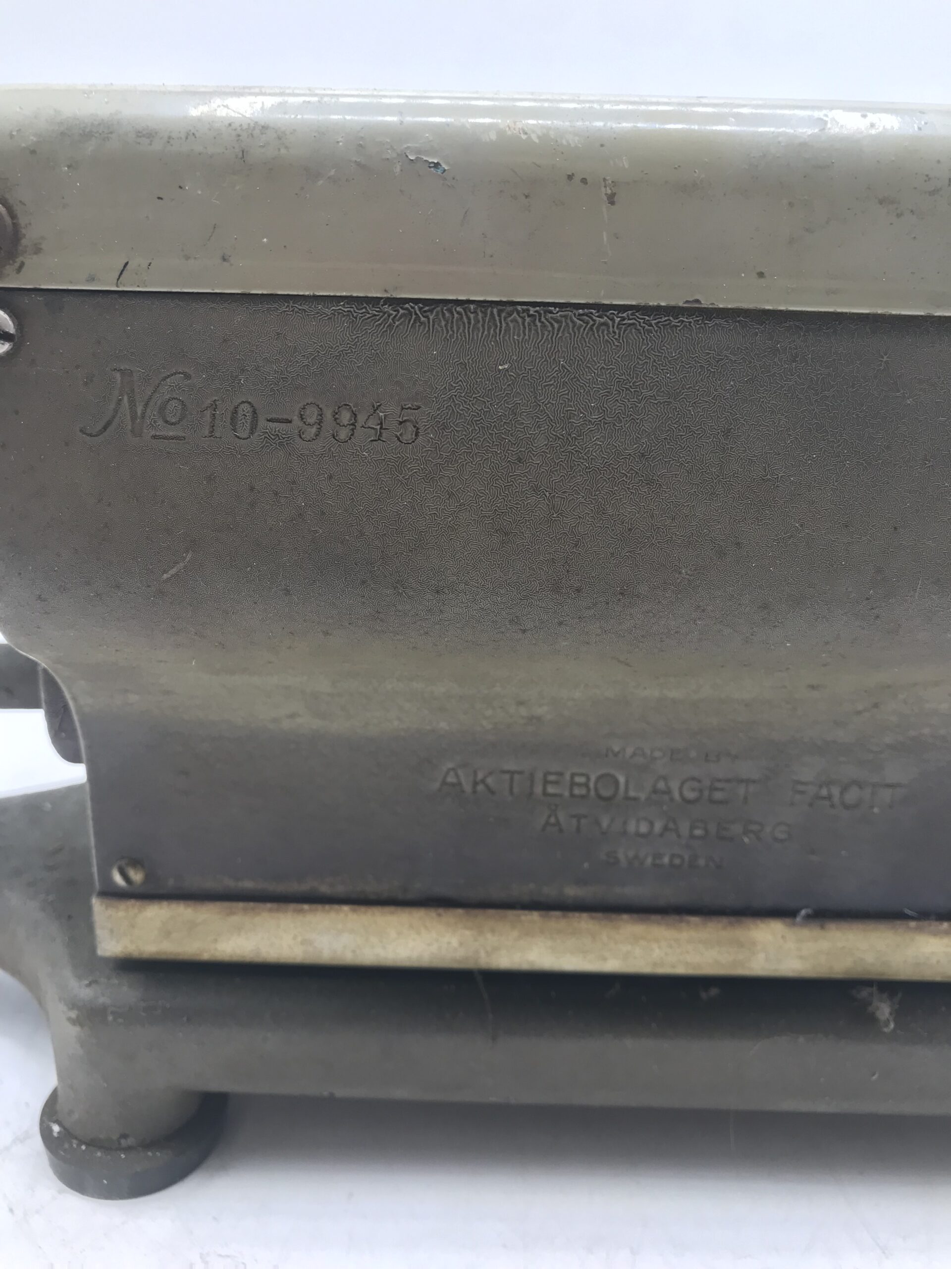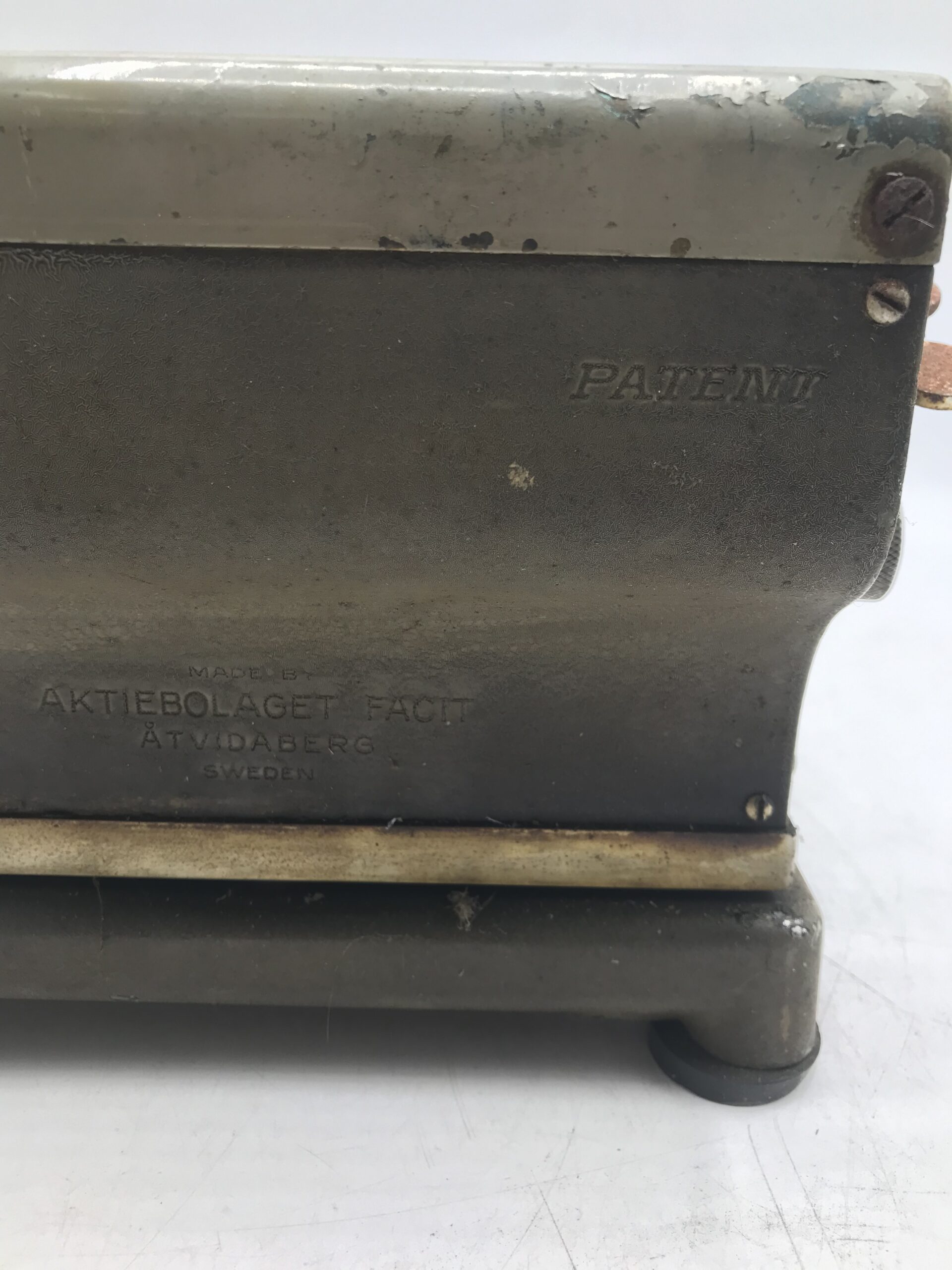 Machine Ă  calculer Facit vintage. Pour les amateurs ou amoureux d’objets anciens. Cette machine de marque Facit nous ramène directement dans le passĂ©. Elle est dans son jus. Objet de dĂ©coration ou pour un bricoleur qui souhaiterai la remettre en Ă©tat. Amateur de dĂ©coration retro et vintage cette petite machine est faite pour vous. Elle ne manque pas de charme. A l’arrière de la machine est notĂ© n°10-9945 Aktiebolaget Facit Swenden. Une très belle machine tĂ©moin du temps qui passe.