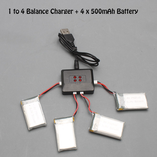 Chargeur 4 en 1 (pour charger 4 batteries en même temps) + 4 x Batteries LiPo 500mAh
