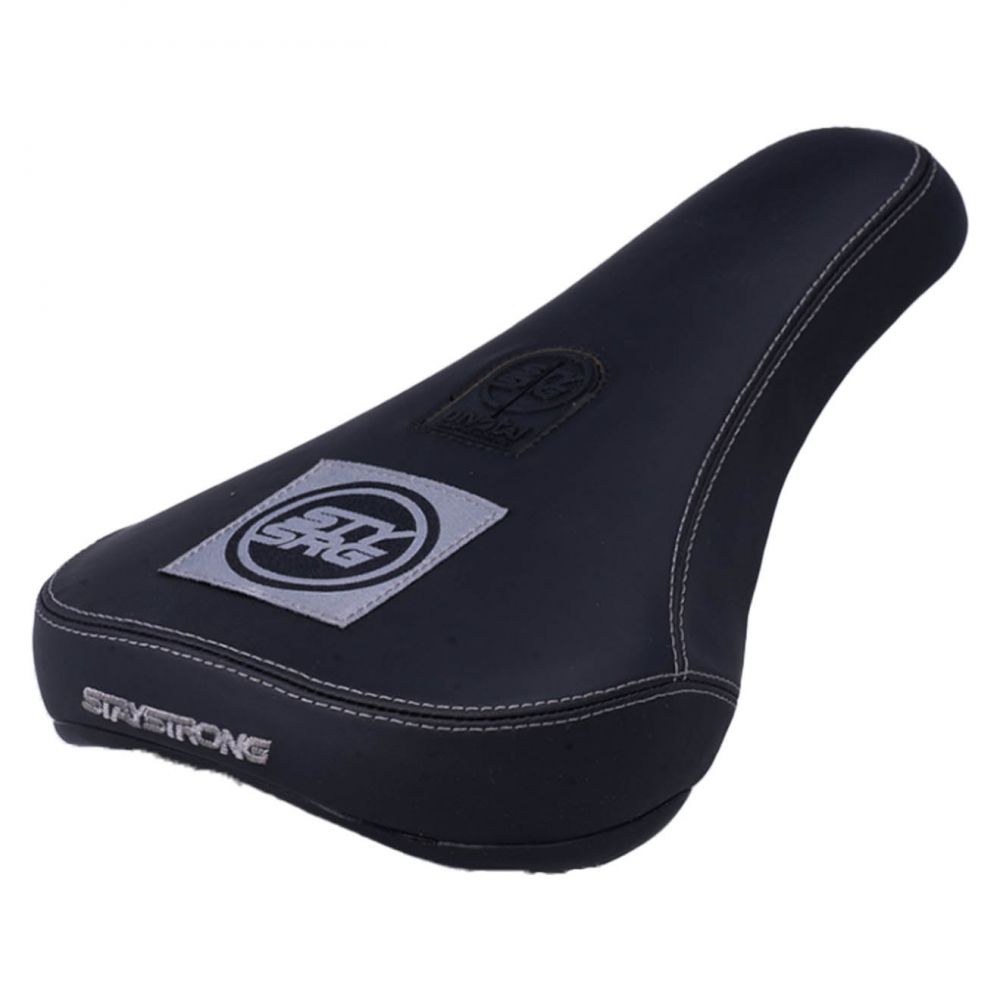 Selle Stay Strong Patch, rembourrĂ©e, avec un revĂŞtement Simili Cuir, elle permettra d’apporter une touche classe nĂ©anmoins rĂ©sistante, avec le logo patch
