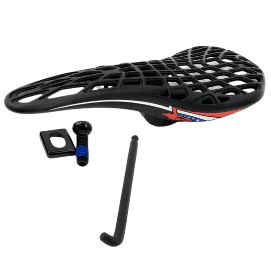 La selle TIOGA SPYDER EVO  USA Edition cache son jeu avec un design original mais c’est une selle ultra lĂ©gère, solide et confortable.